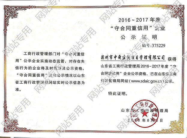 喜訊!我公司獲評(píng)2016-2017年度守合同重信用企業(yè)